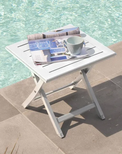 Table basse de jardin pliante Marius en aluminium blanche - 43x43x40 cm