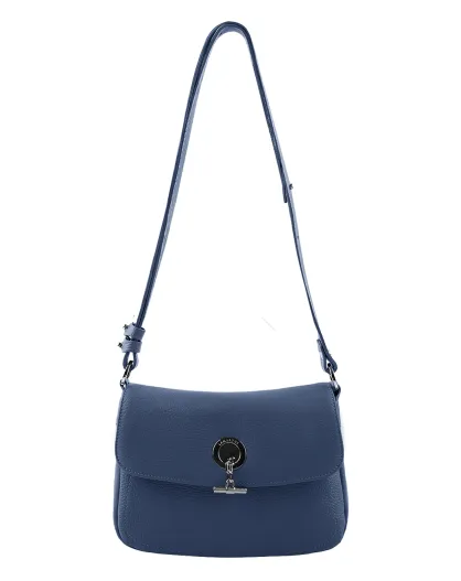 Sac bandoulière en Cuir Paris marine - 25x18.5x7.5 cm