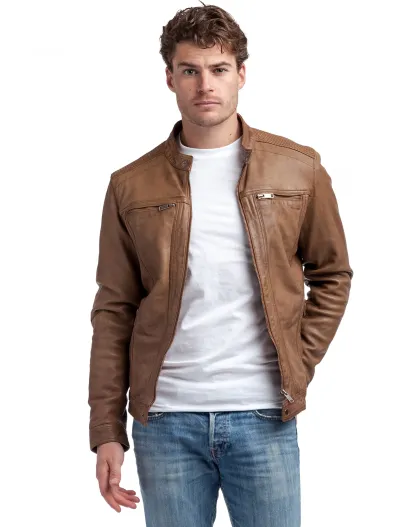 Blouson en Cuir Biker Lucenzo cognac