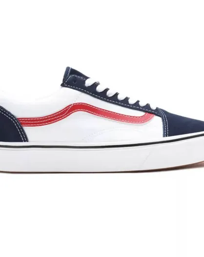 Sneakers en Toile & Velours de Cuir Tri-Tone ComfyCush Old Skool blanc/bleu/rouge