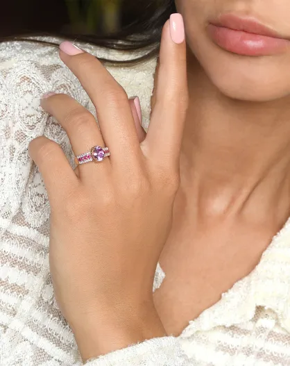 Bague Octavie Améthyste 1.49 ct, Rubis 0.35 ct & Topaze blanche 0.14 ct or rose