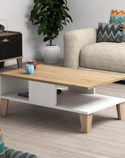 Table basse Sumer marron/blanc - 90x56x41 cm