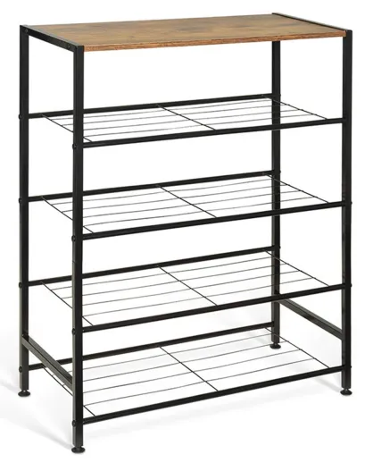 Range-chaussures 4 niveaux Elize bois/noir - 63x30x80 cm