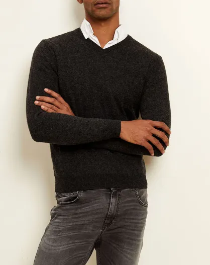 Pull 100% Cachemire col V Dublin anthracite