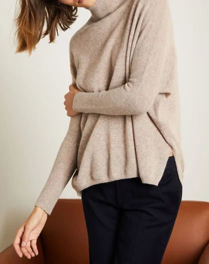 Pull poncho 100% Cachemire Olivia Col roulé taupe chiné