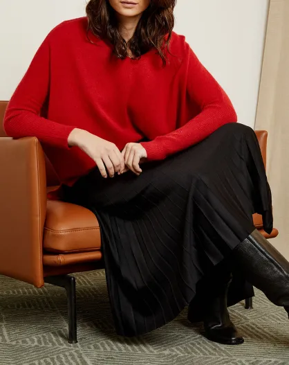Pull poncho 100% Cachemire Axelle Col V rouge