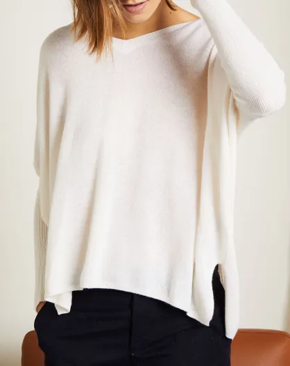 Pull poncho 100% Cachemire Axelle Col V écru