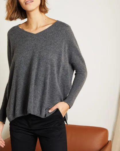 Pull poncho 100% Cachemire Axelle Col V gris chiné foncé