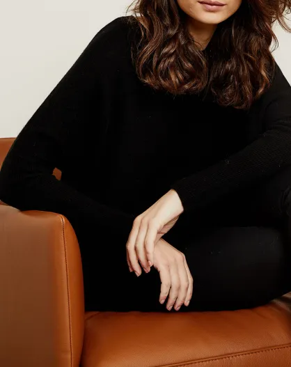 Pull poncho 100% Cachemire Elisabeth Col rond noir