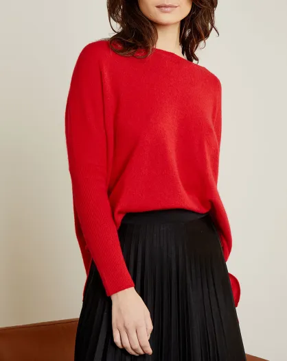 Pull poncho 100% Cachemire Elisabeth Col rond sangria