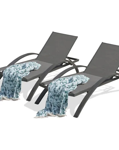 2 Chiliennes Julia en textilène et aluminium anthracite - 102x58x100 cm