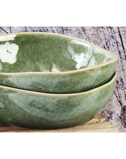 6 Bols en Grès Magma verts - D.18.5 cm