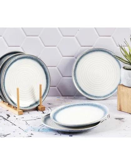 6 Assiettes Cosmos bleu/blanc nacré - D.21.5 cm