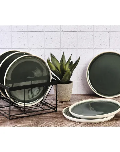 6 Assiettes Oxygen gris/vert bouteille/beige - D.27 cm