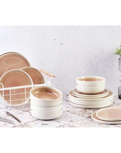 Service Les Essentiels Oxygen rose poudre/beige - 18 pièces