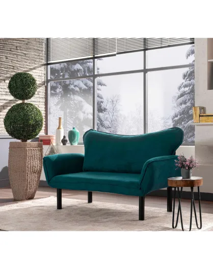 Canapé 2 places convertible Chatto bleu pétrole - 140x70x65 cm
