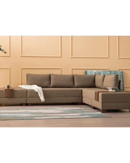 Canapé d'angle droit convertible Fly marron - 210x80x280 cm