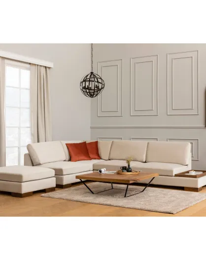 Canapé fixe d'angle gauche avec pouf beige - 313x193x63 cm