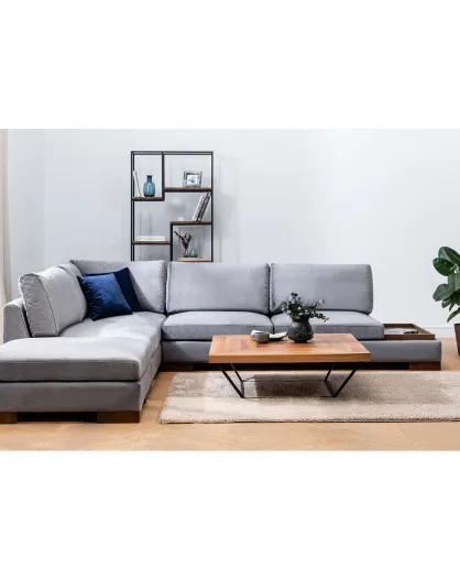 Canapé fixe d'angle gauche avec pouf gris foncé - 313x193x63 cm