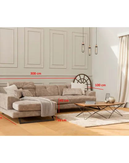 Canapé fixe d'angle gauche Frido beige pierre - 190x308x92 cm