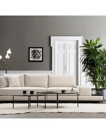 Canapé 4 places avec table d'appoint Line beige - 320x102x84 cm