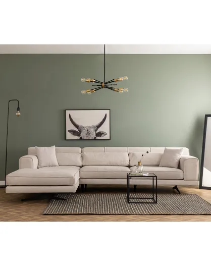 Canapé fixe d'angle gauche Jivago beige - 198x308x78 cm