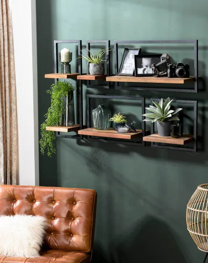 Étagère murale métal XS Alida noir/marron - 20x25x35 cm
