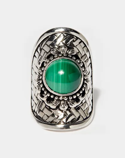 Bague Ocelotl en Argent massif & Malachite 4.9 ct