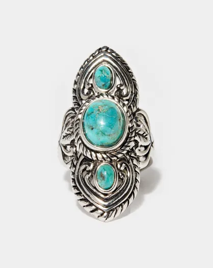 Bague Coatl en Argent massif & Turquoise 2.7 ct