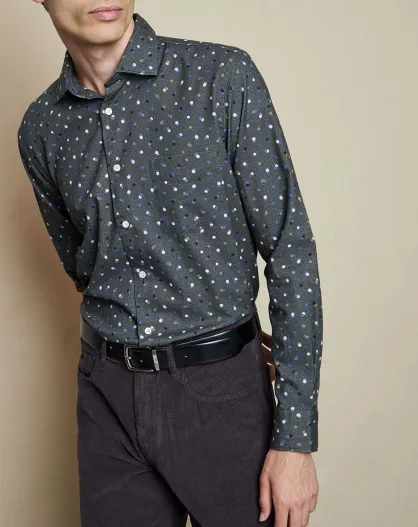 Chemise Regular Penn à pois gris/blanc/beige/bleu