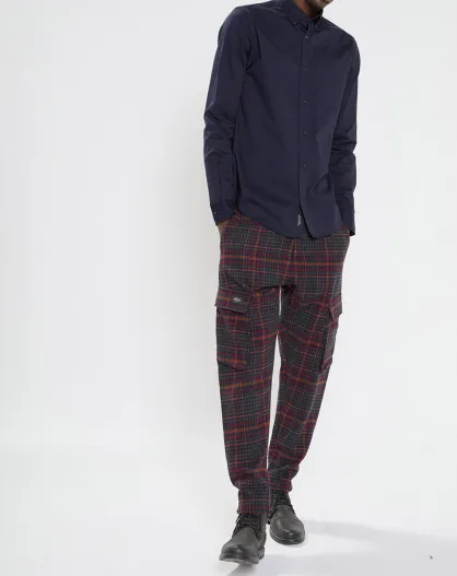 Pantalon cargo en Laine mélangée Slim Fit à carreaux bordeaux/bleu