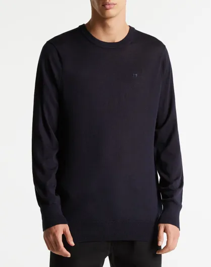 Pull 100% Laine Mérinos Logo Poitrine bleu marine