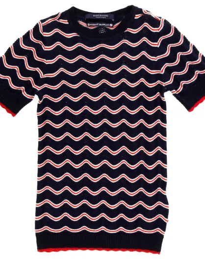 Top en maille Vague bleu/rouge