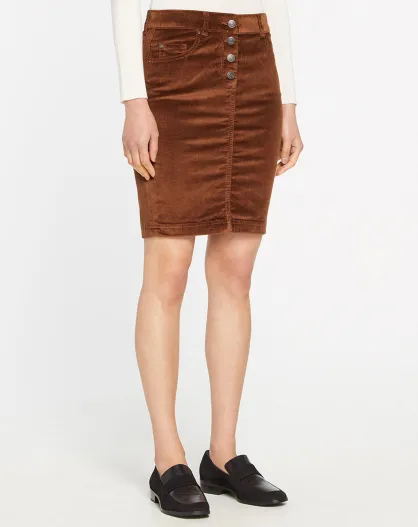 Jupe trapèze en Velours côtelé marron