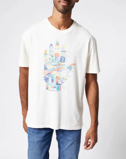T-Shirt en Lin mélangé Print Main Sergio écru