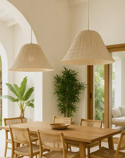 Suspension en feuilles de palmier maa beige/blanc - 43x28 cm