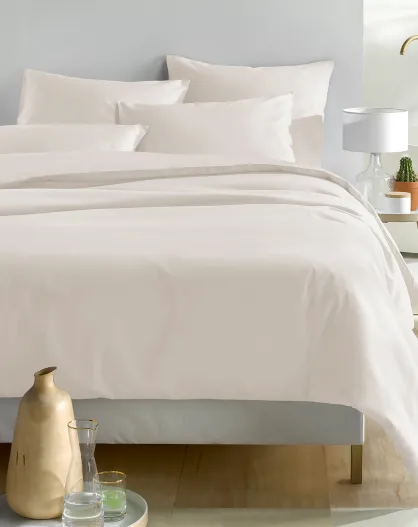 Parure housse de couette en satin de coton beige