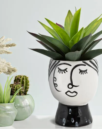Pot en porcelaine Face blanc/noir - D.14x18.2 cm