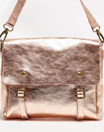 Sac bandoulière en Cuir Nyle rose métallique - 25x27x3 cm
