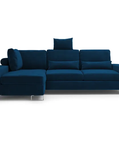 Canapé d'angle gauche velours convertible avec coffre de rangement Diane 4 places bleu roi - 260x188x87 cm