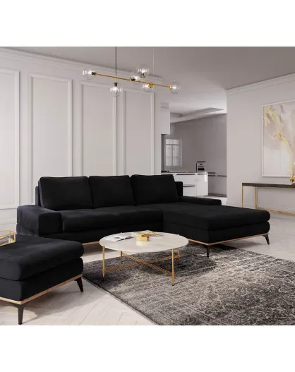 Canapé d'angle droit velours convertible avec coffre de rangement astre 5 places noir - 315x212x87 cm