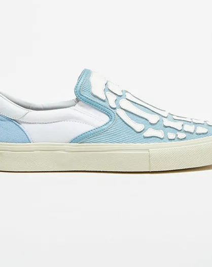 Slip On en Cuir & Textile Corduro bleu/blanc