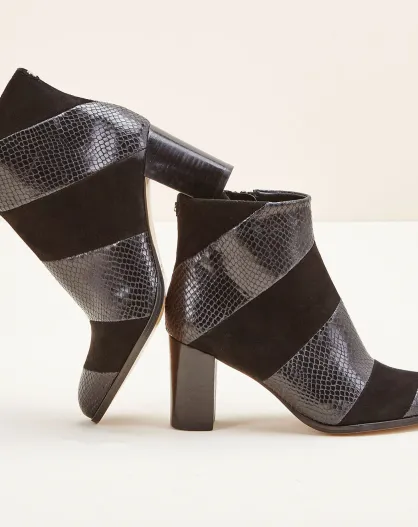 Bottines en Cuir bi-matière Cleos noires - Talon 7 cm