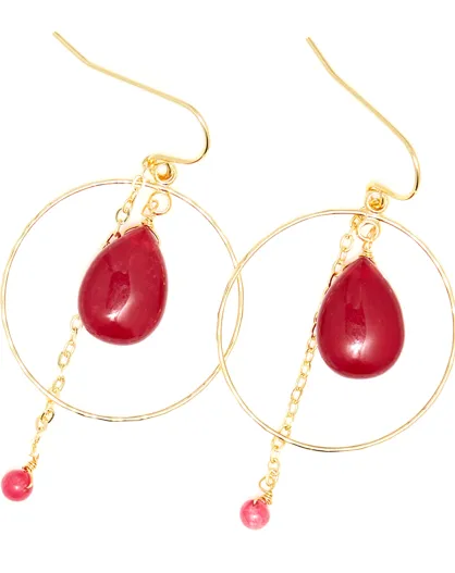 Boucles d'oreilles Leya Jade rouge en laiton doré