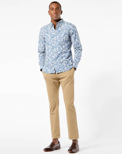 Chemise Stretch Oxford à fleurs bleue