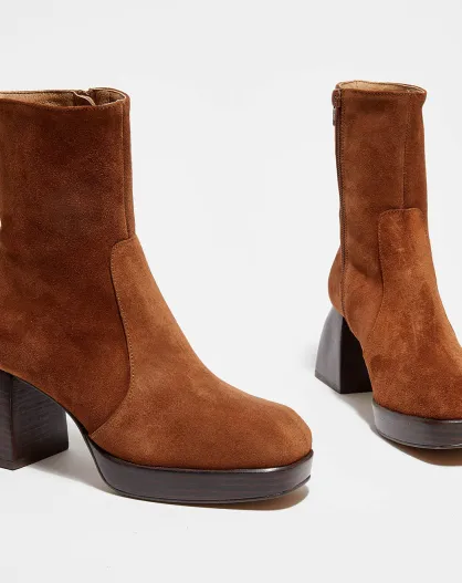 Bottines en Velours de Cuir Loanne marron - Talon 7 cm