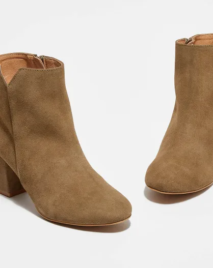 Bottines en Velours de Cuir Ines taupe - Talon 6 cm