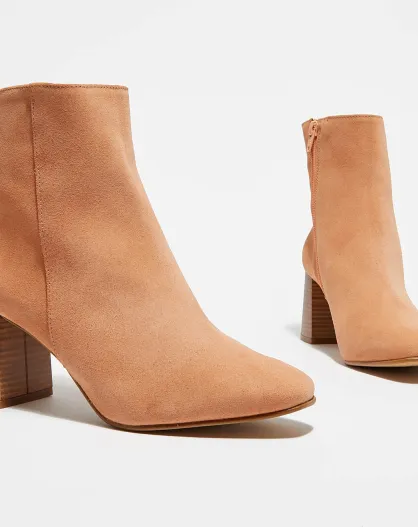 Bottines en Velours de Cuir Elsa poudre - Talon 8 cm