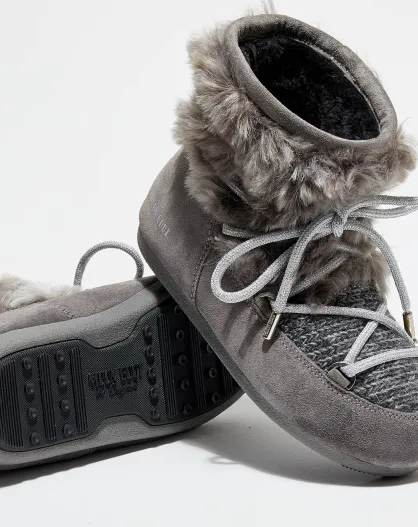 Boots Basses en Velours de Cuir & Fausse Fourrure Side Wool grises
