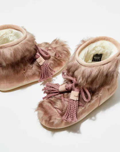 Boots Basses en Velours de Cuir & Fausse Fourrure Side Brinato roses